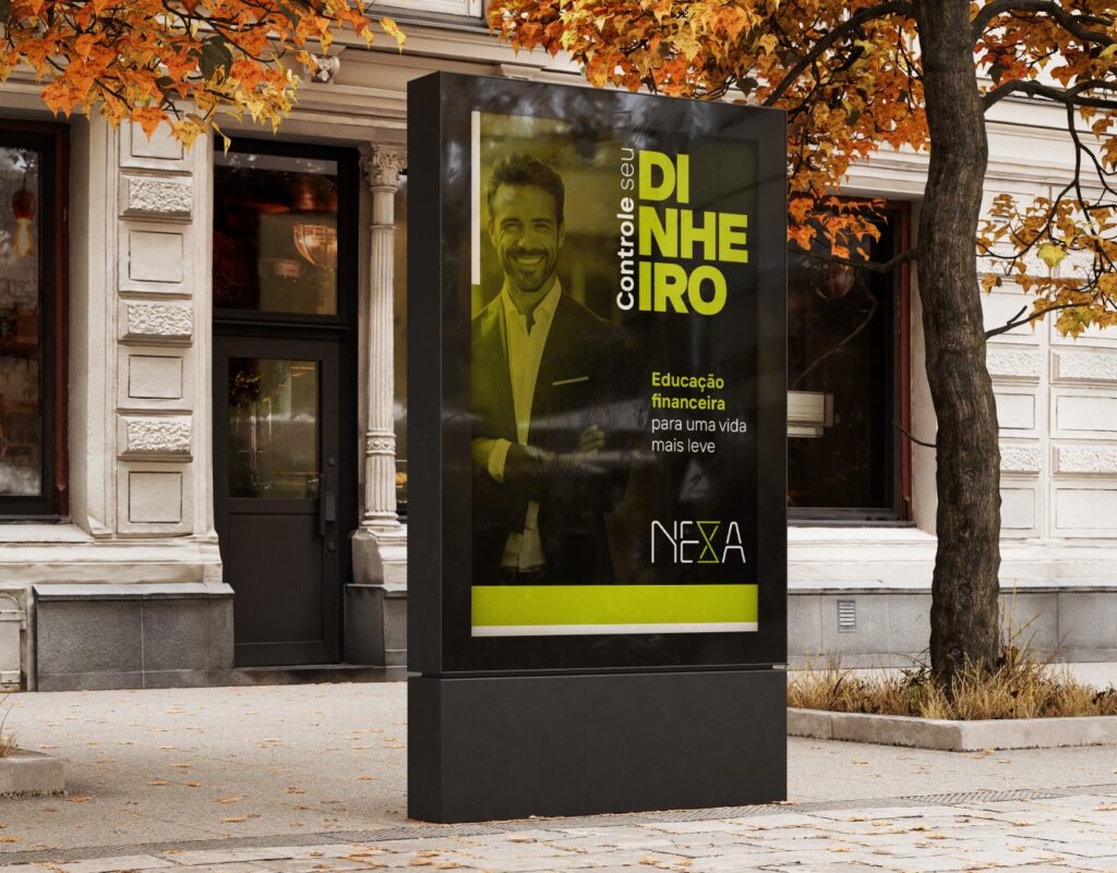 O resultado é uma identidade visual versátil, aplicável em ambientes digitais, institucionais e promocionais, capaz de posicionar a Nexa como uma marca forte no segmento de educação financeira e soluções inteligentes.